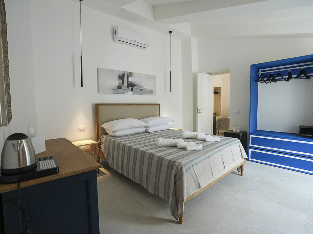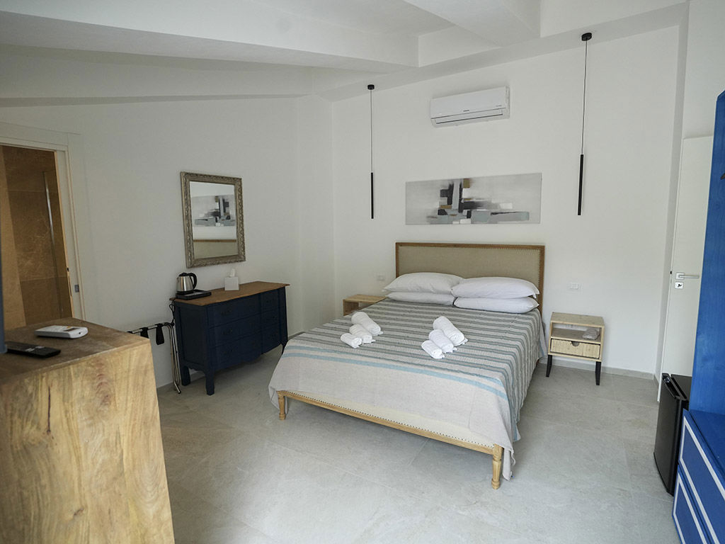 Spacious 50 m² double room with private terrace overlooking the garden and direct access to the pool. It features an en suite bathroom, air conditioning, flat-screen TV, minibar and free Wi-Fi.